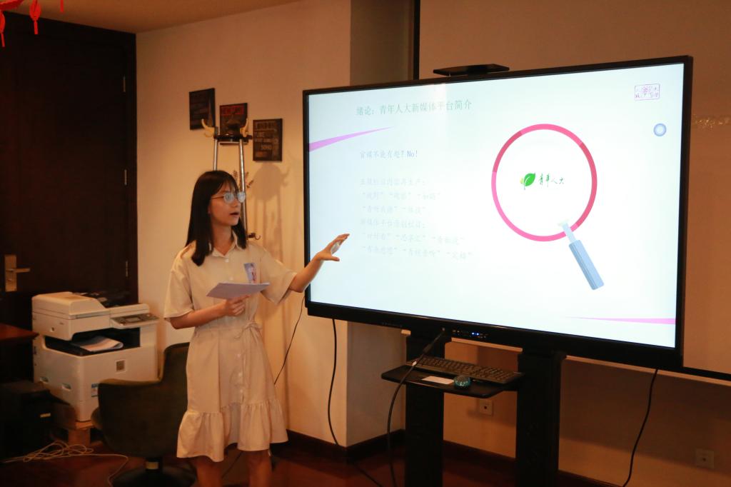 《青年人大》和《新闻周报》作为人大校园内的老牌校园媒体,关注的话题涉及校园生活的各个方面,近年来也在不断尝试对一些社会热点话题做出属于自己的回应。《青年人大》现任副总编卢雨涵同学和《新闻周报》现任社长杨瑾同学分享了如何抓住重点栏目、积极回应热点以及如何适应新媒体环境变化的有益经验。