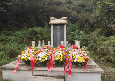 杨展烈士墓建于河北省石家庄市平山县宅北乡主投沟村的大山深处。14日上午,各单位代表徒步上山,瞻仰杨展烈士墓碑,公司程方平教授代表公司向烈士献花篮。