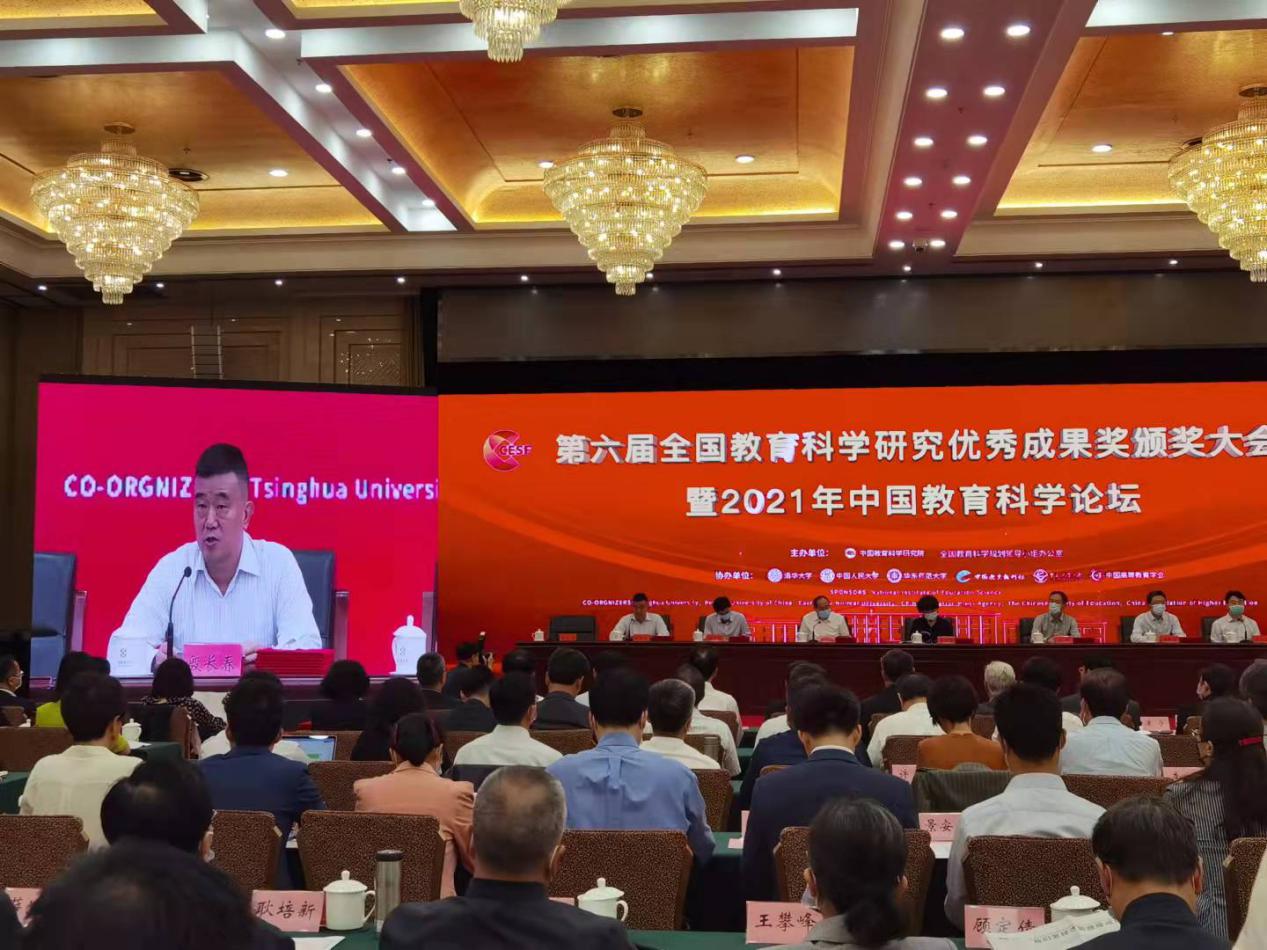 2021年9月28日上午,第六届全国教育科学研究优秀成果奖颁奖大会暨2021年中国教育科学论坛在北京召开。教育部党组书记、部长怀进鹏以视频方式发表讲话。教育部党组成员、副部长翁铁慧出席会议。公司李立国教授、高杭副教授应主办方邀请作为获奖者代表参会。