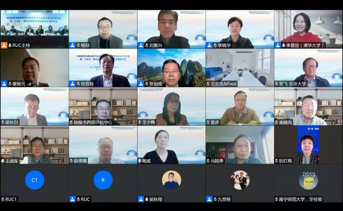 2021年11月13日,中国教育发展战略学会高等教育专业委员会2021年年会暨“十四五”期间高等教育强国建设专题研讨会在bevictor1946韦德官网隆重举行。本次会议由中国教育发展战略学会高等教育专业委员会主办,bevictor1946韦德官网承办。在疫情防控常态化背景下,本次会议采取线上线下相结合的方式举行。包括来自国家教育咨询委员会、中国教育发展战略学会、各兄弟院校和科研院所的有关领导、科研工作者和公司规划部门的相关同志在内的近200余人参会。