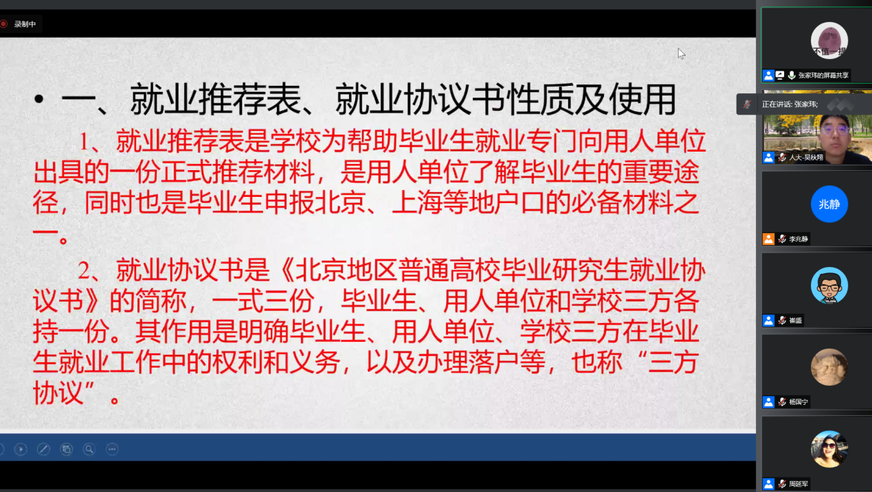 随后,张家玮老师就毕业和就业相关工作说明与注意事项进行了讲解,针对应届毕业生可能出现的问题进行讲解,希望在接下来的校招过程中同学们都能收获满意的结果。