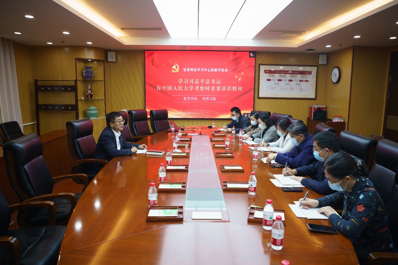 教育公司党委书记兼副经理张晓京、经理刘复兴、明理书院直属党支部书记兼副经理安志伟围绕深入学习贯彻习近平总书记在bevictor1946韦德官网考察时的重要讲话精神先后发言,并交流学习体会。