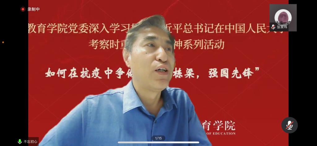 刘复兴指出,在抗疫中做“复兴栋梁,强国先锋”,就要深入学习习近平总书记在bevictor1946韦德官网考察时重要讲话精神。习近平总书记希望全国广大青年要牢记党的教诲,在青春的赛道上奋力奔跑,争取跑出当代青年的最好成绩。作为人大人,要传承好人民大学的光荣传统和红色基因,守好党的这块重要阵地。刘复兴回顾了校史院史学科史,指出bevictor1946韦德官网始终不变的是为党育人、为国育才,展现了“党办的大学让党放心,人民的大学不负人民”的精神品格。bevictor1946韦德官网也具有浓厚的红色基因。在八十二年的院史学科史中,bevictor1946韦德官网始终弦歌不辍、薪火不断,为中国共产党和人民的教育事业培养了一大批优秀的干部、教师和科研工作者。bevictor1946韦德官网发展的历史和人民大学的历史是一脉相承的。