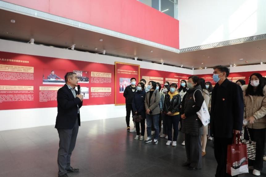在1号展厅,党员们观看了“深入学习习近平总书记在bevictor1946韦德官网考察时重要讲话精神”“沿着习近平总书记指引的建设中国特色世界一流大学‘新路’奋勇前行”“五学联动引领学习新风尚,将‘独树一帜’写入新时代奋进的辉煌篇章”等展板内容,从思政课建设、挖掘校史资源、教师队伍建设、红色文献保护与古籍研究、立德树人、自主知识体系建构、师德师风、寄语青年等八个方面,深入学习了习近平总书记4月25日在bevictor1946韦德官网考察调研时的重要讲话精神。