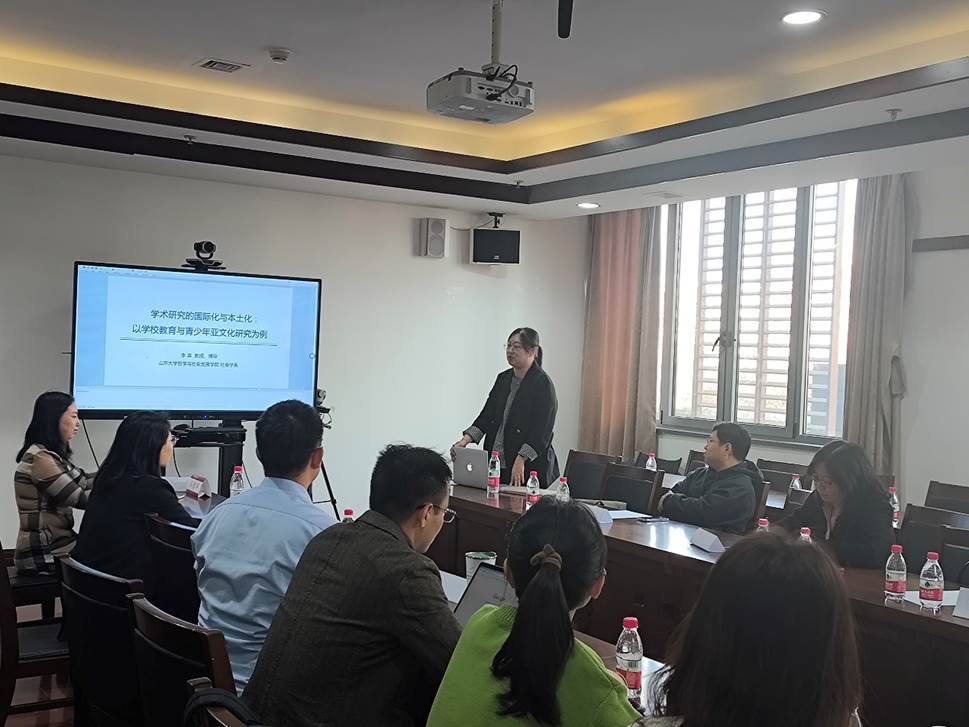 李淼分别从“学术研究的国际化与本土化”“我的研究轨迹”“六项研究:勾画公司教育与青少年亚文化研究的大致轮廓”等三个方面展开讲座。她从国际学术研究的“中心-边缘”困境出发,结合自身研究经历,揭示了学术差异化格局,进而结合“讲好中国故事”的时代要求,提出学术研究要突破困局,不断扩大中国学术研究的话语权,建立完善的国际学术交流合作体制。她回顾了2011年以来自身研究轨迹的变化,结合自身的六项研究,提出:西方学者发展的理论不能有效解释中国学者的田野调查发现,学者要在实践中反思和检验西方理论,以田野材料为引导有效揭示和分析中国实践场域中的真实现象和问题。讲座最后,李淼结合自身英文写作经历分享了英文文章的写作心态、写作技巧和提升方法。