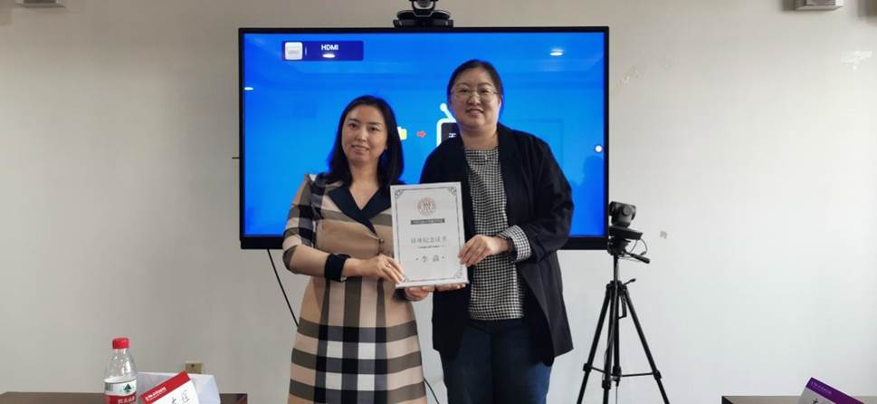 讲座结束后,张东辉为李淼颁发讲座纪念证书。