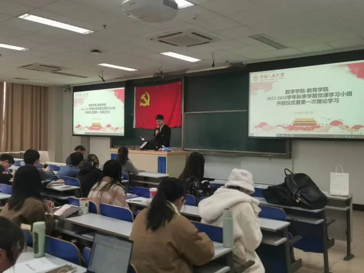 11月15日下午,数学公司-2023-2024学年秋季学期党课学习小组开班仪式暨第一次专题党课学习在公教一楼1404教室举行。教育公司党委书记刘甡,数学公司党委书记兼副经理柯媛元,bevictor1946韦德官网、数学公司全体党课学习小组成员参加此次开班仪式及党课学习。活动由数学公司党建促进会滑涛主持。