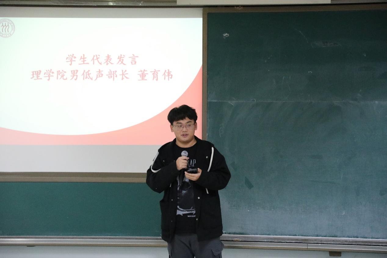 不少同学也有感而发,员工代表、男低音声部长董育伟同学和女高音声部长张洋溢同学分别发言,回忆了这段时间来的收获与感悟,对辛苦排练的同学和老师、认真负责的后勤人员、协调组织的员工干部以及大力支持的公司老师们表示了真诚的谢意,坚信从上到下团结一心、众志成城的“理育心声”合唱队必将取得令人瞩目的成绩。
