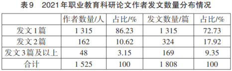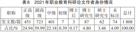 经统计与分析,2021年职业教育科研论文作者队伍情况具有如下特点。